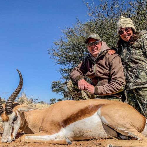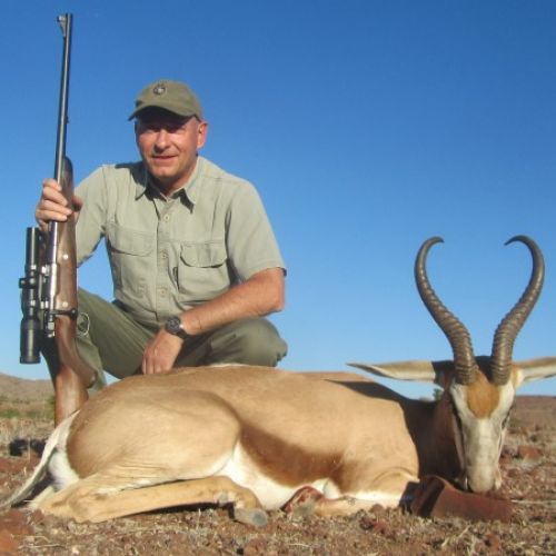 Denna dröm gick i uppfyllelse för min del då jag under 2016 och 2017 jagade hos Omujeve Hunting Safaris i det fantastiska landet Namibia. Man har två åtskilda jaktrevir om tiotusentals hektar dels i Omujeve en knapp timmes bilresa från huvudstaden Windhoek och dels Schonbrunn någon timmes bilresa söder om staden. Jag jagade antiloper på båda dessa revir och nedlade tolv troféer allt från Eland och Kudu till den lilla stenbocken. Flera troféer var riktigt goda som den white blesbock jag sköt som är klar guldmedalj. Den som vill jaga de stora kattdjuren kan fälla såväl leopard som gepard i reviren. Jakten, inkvarteringen, måltiderna är förträffliga och all personal från room maids till PH är hjälpsamma och tillmötesgående liksom ägarfamiljen Elsada, Nic och Corne Kruger. Jag längtar själv att få komma tillbaka och jag rekommenderar verkligen andra att besöka Omujeve Hunting Safaris.
