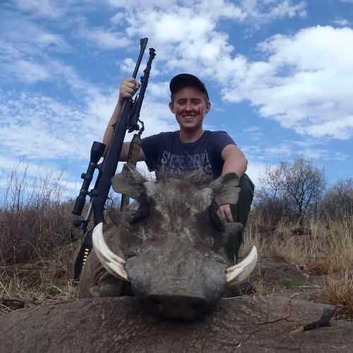 Valget faldt på Omujeve, som ligger tæt ved lufthavnen i Windhoek. Stedet er meget vildtrigt, og med stedets dygtige PHér lykkedes det mig hurtigt at få nedlagt nogle af de trofæer som jeg havde ønsket mig. Ligeledes lykkedes det for min søn at få en rigtig god jagtoplevelse som blev afsluttet med en spændende pürsh og et rigtigt godt skud til et gammelt vortesvin.