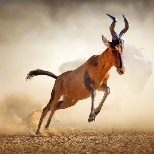 Vetenskapligt namn: Alcelaphus b caama Underarter: Är själv en underart till Alcelaphus buselaphus Utbredning: Sydafrika, Namibia, Botswana och Angola. Habitat: Öppen bush och grässlätter. Beskrivning: Mellanstor antilop som väger ca 170 kg och mäter 120 till 140 cm i mankhöjd. Skinnet är rödbrunt. Hornen är svarta och börjar i en...