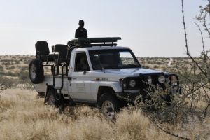I starten af oktober besøgte vi Omujeve Hunting Safaris i Namibia. Vi var de første jægere fra Slovakiet. De behandlede os rigtig godt og på hele turen følte vi os hjemme. Vidunderlig natur, savanne med små bakker, det helt rigtige Afrika. Vi havde også en god erfaren PH og tracker – Uys og Kabila. De var vores venner lige fra starten. Vores andre hjælpere var to hunde – Max og Majlo. Vi gik ikke nogen steder uden dem.