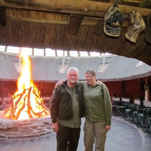 Campen ligger vackert med utsikt över bushen där man blir inkvarterad i rymmliga bungalows byggda av sten från bushen med bad och toalett. Det är 16 bungalows i allt så stället är också byggt till att kunna ta stora grupper. Det är också en swimmingpool om man behöver kylas ner. Måltiderna serveras antingen i den gemensamma lodgen...