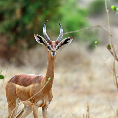 Videnskabeligt navn: Gazella granti Underarter: Gazella petersi, Gazella brighti, Gazella robertsi. Udbredelse: Fra syd Somalia til de sydlige dele af Tanzania. Levested: Græssletter og åben bush. Beskrivelse: Middelstor gazelle med en skulderhøjde på 95 cm og en vægt på 60 - 85 kg. Jagtmetode: Pürsch Jagtbar i: Tanzania, Ethiopien