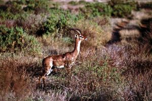 Vetenskapligt namn: Littocranius Walleri Underarter: Litocranius w. sclateri. Utbredning: Uganda, Somalia, Etiopien, Tanzania och Kenya. Habitat: Bush med mycket buskar. Beskrivning: Vacker rödbrun gasell med karaktäristisk lång hals, som har givit namnet giraffgasell. Giraffgasellen väger ca 35-50 kg och mäter ca 100 cm över manken. Jaktmetod:...