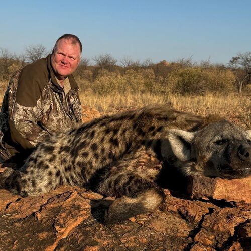 Videnskabeligt navn: Crocuta crocuta Underarter: Ingen. Udbredelse: Det meste af Afrika med udtagelse af den vestafrikanske regnskov og Sydafrika. Levested: Åben bush og græssletter. Beskrivelse: Mellemstort hundelignende dyr med kompakt krop og kraftige ben. Den opnår en vægt på ca. 70 kg og en højde på 80 cm målt over skuldrene. Hovedet er...