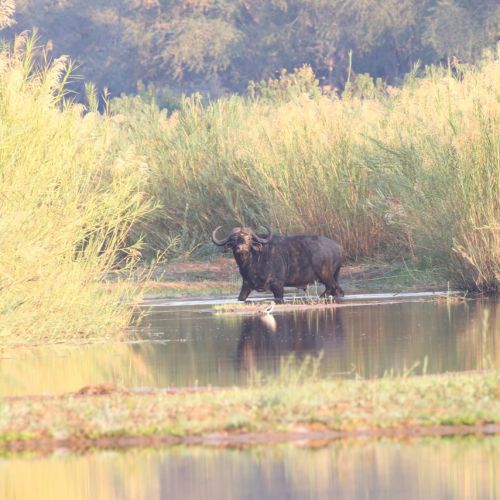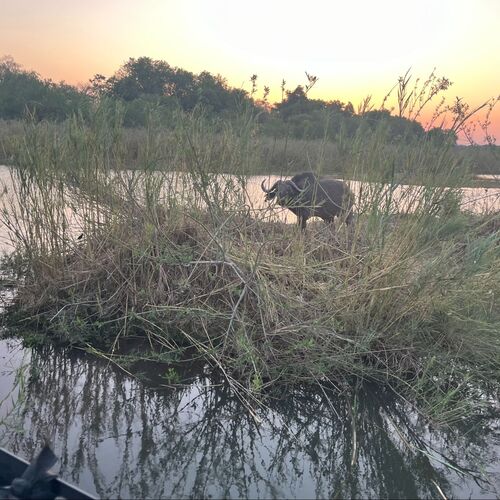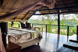 Inkvarteringen är ”safari-style” i antingen tält eller stråtäckta stugor med egen toalett och bad samt en enastående placering med utsikt utöver bushen eller floden. Förplägnad och service är av förstaklass. För inte jagande följeslagare är det inte mycket att göra eller ta sig för om man inte vill följa...