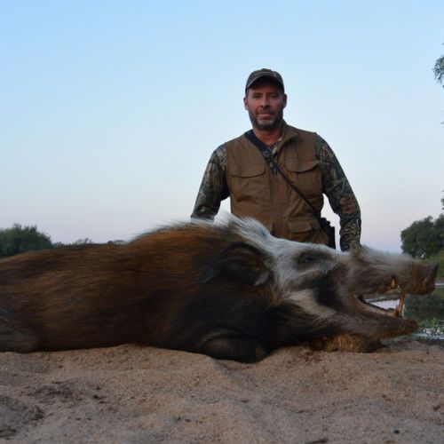 Vetenskapligt namn: Potamochoerus porcus Underarter: Det erkänns upp till 18 underarter, som alla beskrivs här under en. Utbredning: Hela Afrika söder om Sahara med undantag för ökenområden i Namibia. Habitat: Tät bush ofta längs floder. Håller ofta till i närheten av odlade marker där de vållar mycket skada. Beskrivning: Mindre...