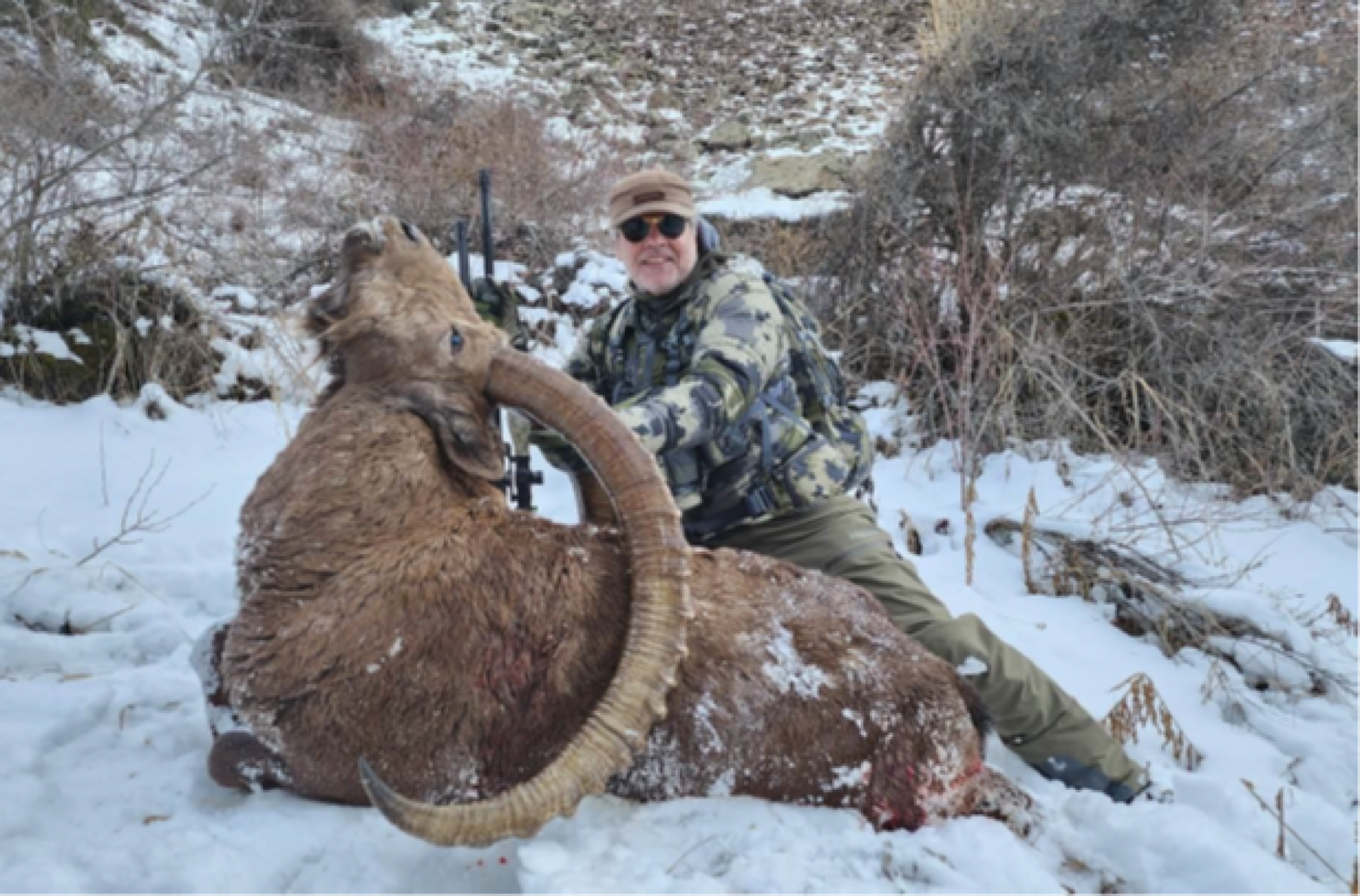 Detta är en klassisk bergsjakt. Hästar används till att transportera den nödvändiga utrustningen till Spike Camps om jaktterrängen tillåter det. God fysik fordras då mycket av jakten sker till fots på de karga bergssidorna. Baslägret ligger på ca 1 800 m.ö.h. och jakten sker på 2 600-3 500 m. Det genomsnittliga skjutavståndet är 250-300 m, men ibland ända upp till 550 m, allt efter jägarens skjutskicklighet.