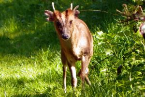 Vetenskapligt namn: Muntiacus reevesi Underarter: Inga. Utbredning: Södra Kina (införd till södra England runt århundradeskiftet) Habitat: Tät undervegetation. Beskrivning: Äkta muntjak, liten hjort som väger upp till 12 kg med en mankhöjd på max 46 cm och en kroppslängd utan svans på 85 cm. Sommardräkten är rödbrun och...