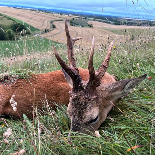 Vi har inlett ett nytt samarbete för jakt på 20 000 hektar strax söder om Oxford. På marken skjuts varje år 75-100 bockar av vilka ungefär hälften är medaljbockar. Mellan 15 och 20 av dem är guldbockar! Med andra ord – en riktig drömmark för medaljbockar. En bocktrofé på 500 gram kostar ungefär 11 800 SEK.