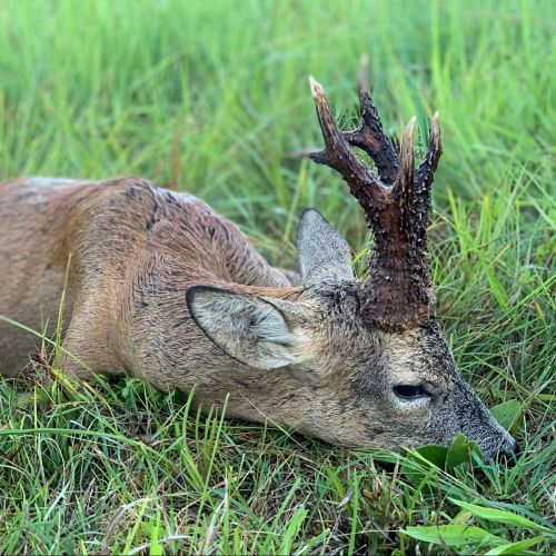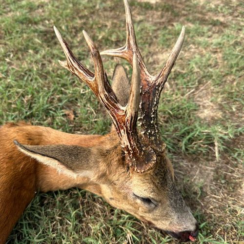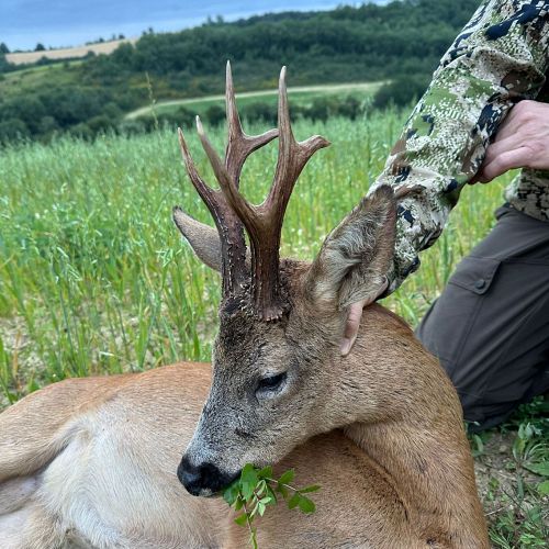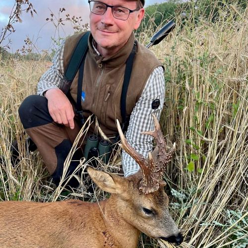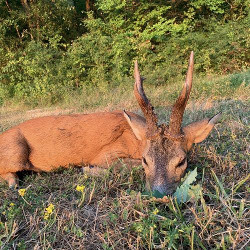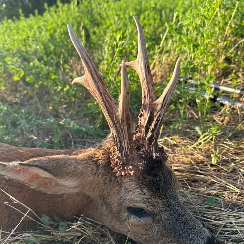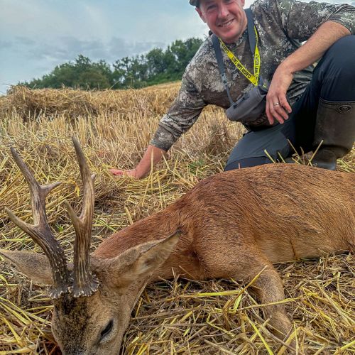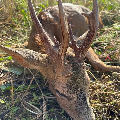 Vi hadde en flott tur til Frankrike i weekenden. Været var spesielt pent, med opp mot 30gr på eftermiddagen. Litt varmt for en noe overvektig nordmann. Jeg regnet med at det kunne bli litt svært å finne noen pene bukker så sent i sesongen. Jaktområdene var også minsket kraftig inn. Men med god hjelp av en god jaktfører; Christopher fikk jeg skyte 4 bukker, hvorav den ene var en riktig god bukk.
