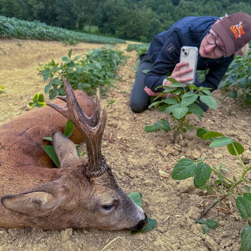 Arbejdsopgaver gjorde at Frederic var nødt til at tage tilbage til sin butik, hvorefter guiden Lucas overtog som jagtfører. Dagen før havde han set en stor buk, og han ville have mig med, for at se om vi kunne finde den. Vi pürschede over en kilometer, måske to. Hele tiden op ad bakke gennem skoven. Vi kom til en række små enge og mindre majsmarker. Majsen var omkring 30 cm høj. Pürschen foregik særdeles forsigtigt. I det høje enggræs så Lucas ørerne af en buk. En då. Hun så os, men kunne ikke få færten af os og satte sig derfor igen. Ingen buk rejste sig.