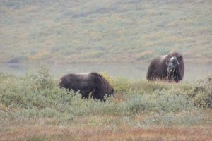 Jagten på moskus var ganske spændende. Godt nok ikke den helt store jagtlige udfordring – udover den adrenalin, der pumper rund i blodet, når man kommer helt tæt på de store dyr (de vejer op til ca. 450 kg). Derimod var jagten på rensdyr ret hård – ca. 10 timers dagsmarch i krævende terræn.