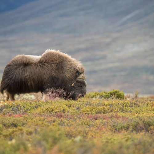 Trofémässigt är myskoxarna i detta område bland det största i världen och är större än tillexempel den kanadensiska myskoxen.