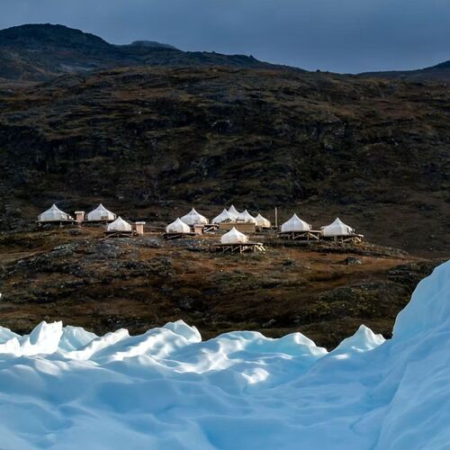 Campen/lägret ligger i ett floddelta, där 2 smältvattenfloder från inlandisen möts. Lägret ligger i direkt anslutning till jaktmarken antingen till fots eller med båt över floden till andra stranden, eller med gummibåt över sjön ovanför lägret. Området är också ett utmärkt ställe för fiske efter fjällröding på sommaren.