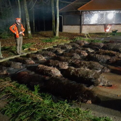 Exempel: Gruppen skjuter 55 vildsvin (13 + 23 + 19) på 3 dagar, och totalpriset per jägare är EUR 2.890,- inklusive jakt/logi.