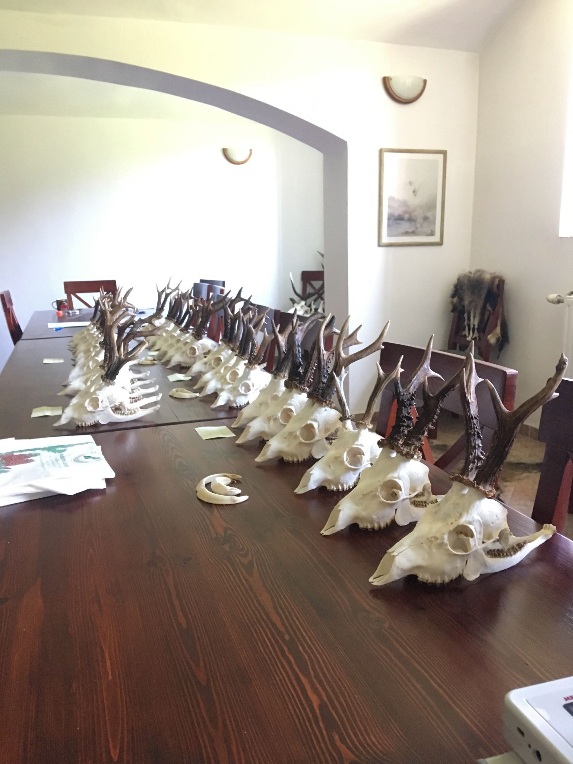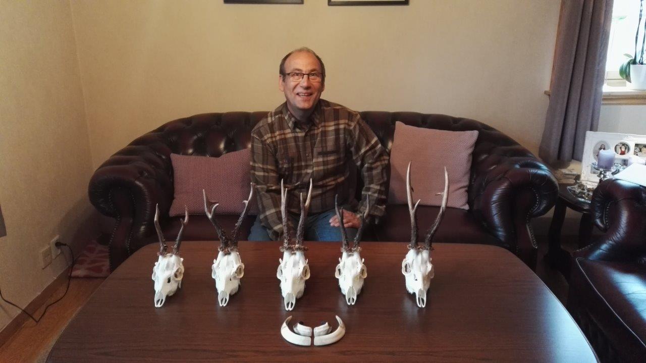 Brian skød en stor fin hjort på knap 6 kg med en større kropsvægt end min. Den ene af de to andre jægere vi mødte på Wierzchlas, skød to hjorte på omkring 5 kilo, den anden jæger fik en hjort også på ca. 5 kilo og så hastede han ellers videre på jagt i Tyskland. Brian skød udover hjorten også en fin buk. Og jeg skød forbi på en enkelt ikke så gammel buk. Indrømmet! Jeg var ikke specielt ked af at misse den. Ved underskrivning af protokol seancen i det store kontor, trofæ og protokolrum i kælderen, gør Karol mig opmærksom på, at jeg skal få min hjort målt op efter 90 dage. Det skal jeg, fordi det er en sikker bronzemedalje og en mulig en sølvmedalje. Som sagt så gjort. Carl Hjort i Lystrup måler op for Nordisk Safariklub og han måler Hjorten til 191 point, hvilket betyder sølvmedalje! Det er næsten for meget. Jeg er heldig igen.