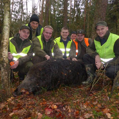 Drevjakt i norra Polen på välorganiserat statsrevir med professionell jaktorganisation. Viltparaden består oftast av vildsvin, kronvilt, dovvilt och råvilt. Trevlig inkvartering mitt i reviret. Det är möjligt att arrangera jakten efter prislista eller som fastprisarrangemang utan tillägg för vildsvinsgalt!