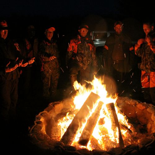 Jakten startar med uppställning vid soluppgången då jaktledaren/chefen informerar om jaktens utförande samt om säkerhetsföreskrifterna.