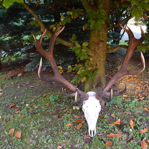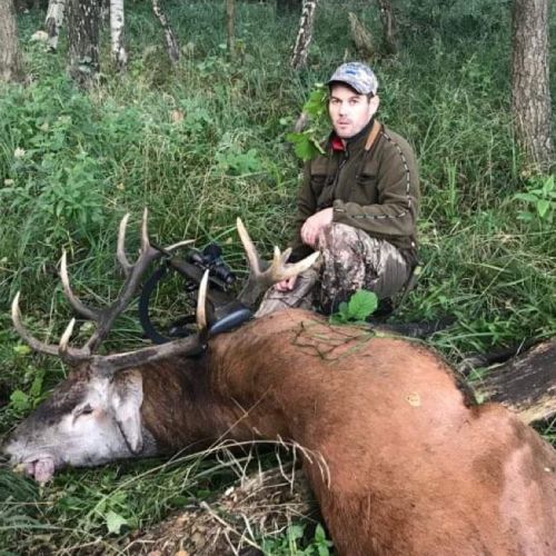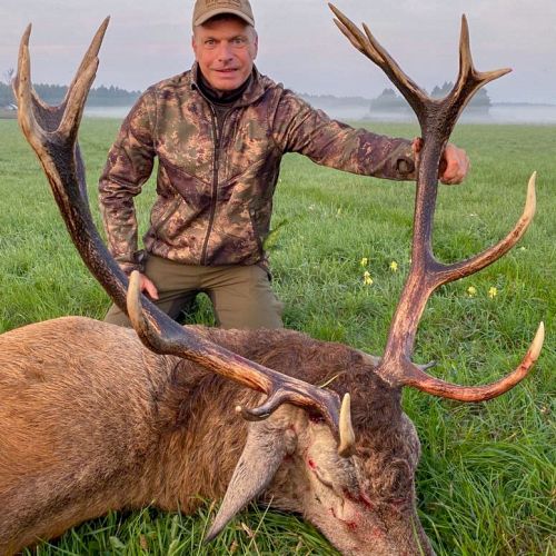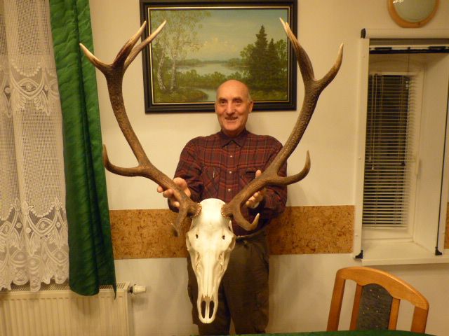 Netop hjemvendt fra en dejlig jagt i Polen på brunst hjort, brunsten udeblev desværre og vi havde dårligt vejr. Skød denne prægtige åhjort efter en lang pursh kom han endelig på scenen , jagtføren spottede ham , jeg kunne ikke se noget som helst i den tætte skov. Jagtføren satte skydestokken klar, jeg lage riflen klar, fikserede et punkt og det punkt kom han ind i, havde valgt at afgive et højt blad skyd og ventede bare han ville komme fra højre. Pludselig passere han træer først geviret så forkroppen og da han stod perfekt stadig halvt dækket af træet sendte jeg missilet afsted.