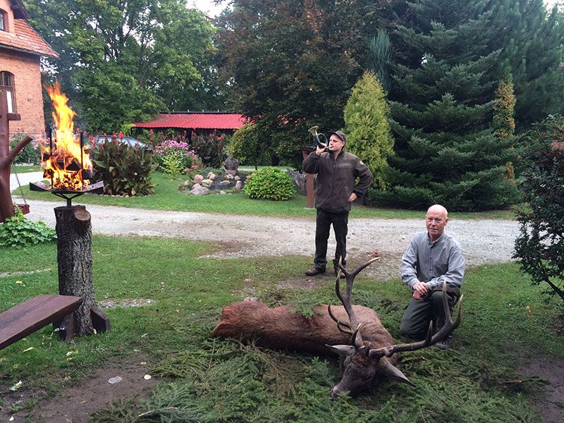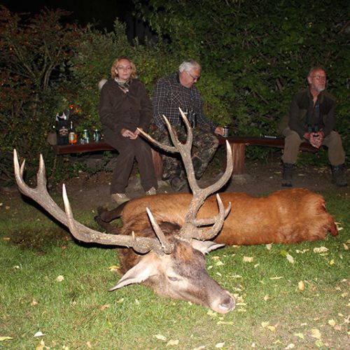 ” Vi havde en super tur – min far og jeg ankom på reviret midt i brunsten og blev budt velkommen af oberfürster Adam – der var super meget vildt og vi så ræve, grævling, rådyr, dådyr og ikke mindst en masse krondyr som vores jagtguider havde 100% styr på – super værelser, mad, jagtguider og stemning – fedt at de gør så meget ud af at vise vildtet en sidste ære med jagthornsblæsning, parade, ild osv. – efter at vi hver havde skudt hjort skød jeg både ræv og råbuk så det var på alle måder en super tur - vi havde fabelagtige dage og har nu hver en flot hjort på væggen.