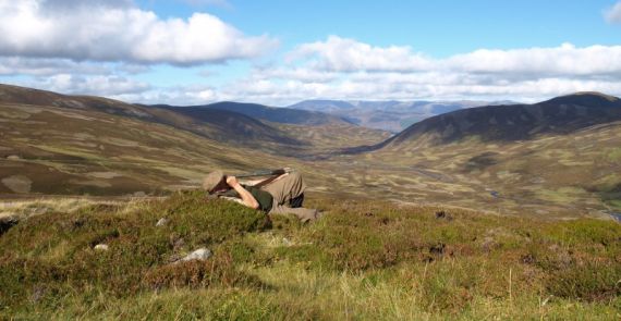 Da vi kommer derop, ser jeg at ibexen står med front mod os og kigger lige på os, jeg gør klar til at indtage en liggende skydestilling, men Luis fortæller mig, at der ikke kun er 1 men hele 3 ibexen og den der står og kigger på os ikke er den største. Jeg får lagt mig ned, foldet støtteben til riflen ud, så jeg kommer over vegetationen, indstillet asv på 200 mtr. Og kigger i fiffelkikkerten. Til venstre for den der står med front til os, står en ung ibex, den er helt brun i pelsen endnu, hvilket de er til de når over 10 år, men kan stadig ikke se den rigtige. Så pludselig træder den et skridt frem bag nogle buske, jeg er ikke i tvivl, den er kæmpe!