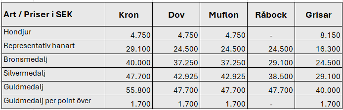 Trofépriser vid individuell jakt:
