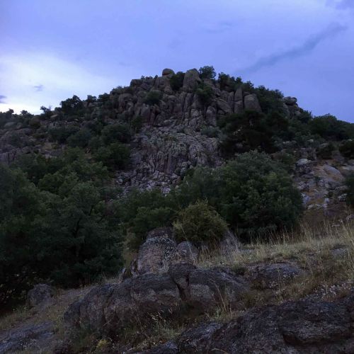 Hen under aften klarede det en smule op, og Mehmet foreslog, at vi tog tilbage til bjerget, hvor vi startede om morgenen. Inden vi nåede så langt, gjorde vi et kort ophold og spottede en bjegside, hvor en gruppe hundyr (Ibex) opholdt sig - ca 500 m fra os. Mehmet oplyste, at han tidligere havde set et god Bezoar-buk på stedet, men han var tilsyneladende ikke at se. Netop som vi ville fortsætte turen, så jeg "min" Bezoar stå på bjergtoppen, som en anden konge og spejde ned mod dalen, hvor vi stod. Det var dog nok hundyrene han var interesseret i - trods afstanden mellem dem var ca 1 km. Vi kunne straks konstatere, at det var en skudbar buk, så nu var det bare at håbe.