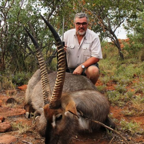 På trods af at jeg overfor Mias ”krævede”, at mit ”fejl-skud” om fredagen ikke skulle være mit sidste skud i Limpopo, og at vi derfor skulle gå efter en warthog eller impala, fastholdt Mias at vi skulle gå efter en waterbuck. Igen var jeg ikke svær at overtale, hvorfor jagten på waterbuck fortsatte. Efter frokost så Pedias en ny stor waterbuck fra bilen, hvorefter vi fik standset Land Roveren og gik tilbage og fandt sporet af denne markant mindre waterbuck end gårsdagens. Efter at have været på sporet af denne i kort tid, fik jeg den pludselig på skudhold. På 45 m. nedlagde jeg herefter denne mindre – men trods alt meget flotte waterbuck i to skud.