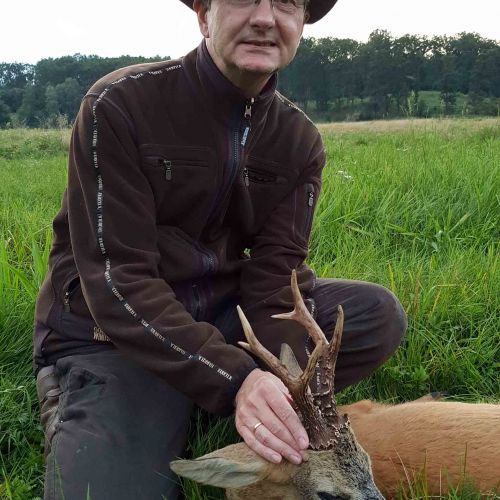 Jeg skød 5 gode bukke, mens Kim skød 6 gode bukke og et vildsvin. Der er rigtig meget vildt i området dernede. Min jæger Bogdan sagde op til den allerførste jagt, at ”In the high-seat only the insects are happy”. Jagten foregik da også mest ved, at vi kørte rundt i og mellem de store områder af skov og enge. Vi kom godt fra start. Jeg lagde ud med at skyde 2 gode bukke den første aften, mens Kim nøjedes med 1. Morgenen efter skød Kim så to gode bukke, mens jeg måtte nøjes med 1.