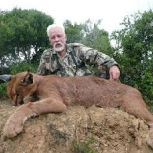 Der blev skudt omkring 50 trofæer i gruppen og højdepunket var de to Caracals vi nedlagde! Meget spændende at snige sig i en position, kalde/lokke ! Min caracal så os og sprang over hundene og løb et par miles med 10 jagthunde efter sig - så igen meget gøen, og nu begyndte den sværeste klatring gennem 500 meter lige ned i en dal,og omsider fik jeg min Caracal!