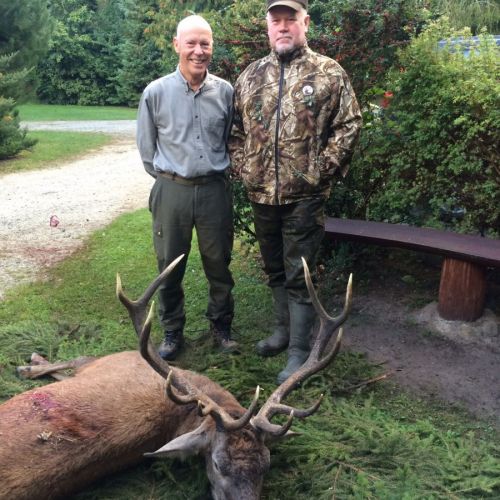 ” Vi havde en super tur – min far og jeg ankom på reviret midt i brunsten og blev budt velkommen af oberfürster Adam – der var super meget vildt og vi så ræve, grævling, rådyr, dådyr og ikke mindst en masse krondyr som vores jagtguider havde 100% styr på – super værelser, mad, jagtguider og stemning – fedt at de gør så meget ud af at vise vildtet en sidste ære med jagthornsblæsning, parade, ild osv. – efter at vi hver havde skudt hjort skød jeg både ræv og råbuk så det var på alle måder en super tur - vi havde fabelagtige dage og har nu hver en flot hjort på væggen.