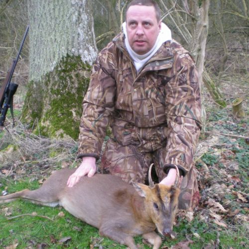 Man skal også tænke på vejret,duerne er svære at have med at gøre om vinteren ind på en ny høstet mark.Vi havde også 3 dage på muntjac og der må man også sige at de kunne levere varen,Ole min jagtmakker skød en muntjac på 12cm som nok bliver målt op til guld,jeg skød selv en på 4cm og en muntjac hun, som er lige så spændende som at jage bukken.Den ene aften havde jeg 5 muntjac hunner omkring mig,så kun lige et glimt