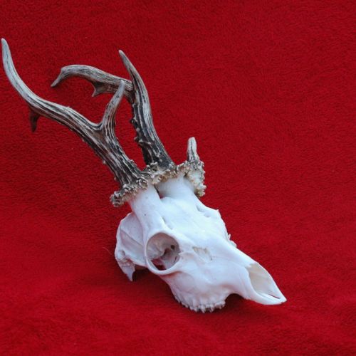 Lørdag morgen var det fint vejr, og jeg så nogle dyr på en eng som vi pürsede til, og her fik jeg så skudt en nydelig regulær seksender. På vejen hjem fik vi så endnu en gang en melding over mobiltelefonen ”Morten schiesen buk”, ….og så var der lige en lille pause ” …Grosse buk”! Den var i hvert fald lidt større end de andre, lad mig udtrykke det sådan! ….Trofæet vejede ca. det dobbelte af hvad de andre vejede !!!! ….For at være helt præcis 611 gram brutto !!! – Men det er vel også rimeligt når den er 7-takket og har 3 rosenkranse !!