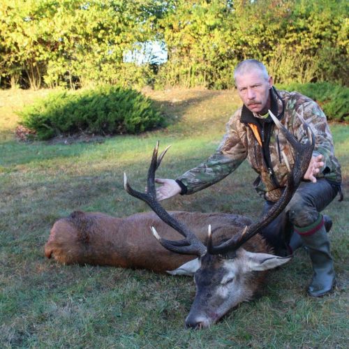 Vi hørte godt med brøl og brunstaktivitet, men i år havde det været noget tid før, og der havde været noget mere gang i brølene ugen forinden, men vi hørte masser af brøl og så en del flotte hjorte. Jeg skød en rigtig flot hjort på 4,5 kg. U-12ender som vi gik efter to aftener, hvor jeg skød den den anden aften. Den så lidt større ud, da den gik derude, og vi havde vurderet den til mellem 5 og 5,5 kg. men det er en rigtig flot Hjort og det var en rigtig god jagt, så det var perfekt. Min far skød en rigtig flot stærk Hjort den sidste morgen også en u-12ender men noget større og tykkere i stængerne 6,3 kg. og den havde han også haft en rigtig god jagt på, og det var en gammel Hjort, så det var også rigtig godt.