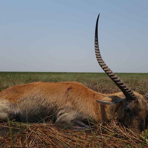 Kafue Lechwe – De flesta av denna safari sker enligt följande: Våra jägare kommer till Lusaka eftermiddagen innan jakten. Vår partner möter dig vid ankomsten och kör dig till hotellet efter eget val eller vi assisterar med val av hotell. Tidigt nästa morgon kommer vår professionella jägare och hans tracker och hämtar dig och kör dig till Lochinvar/The Kafue Flats (det enda ställe på den afrikanska kontinenten där det kan jagas Kafue Lechwe). Det är en jaktupplevelse du aldrig kommer att glömma. Under en normal jaktdag ser du hundratal efter hundratal av Kafue Lechwe. Du kommer förmodligen uppleva det som om antilopen har en avståndsmätare, för varje gång du närmar dig 250-300 meter börjar flocken gå ifrån dig. Om du har tur ska du förmodligen upptäcka flera fina troféer innan du kan nedlägga denna praktfulla antilop. En flackskjutande kaliber gör uppgiften lite lättare. Efter det att du nedlagt din Kafue Lechwe återvänder du till Lusaka samma eftermiddag/natt och ditt afrikanska äventyr kan fortsätta.