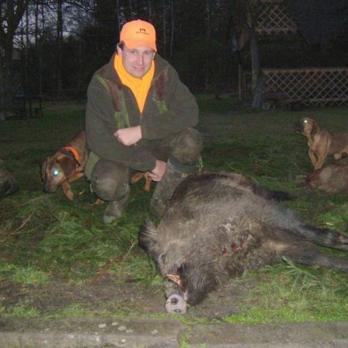 Boendet sker i ett jakthus mitt i skogen i vackra omgivningar med 2 km till närmaste granne. Här bor också våra jägare som jagar vid Zlotoryja. Gästdelen på plan 1 innehåller förutom ett mysigt vardagsrum 6 dubbelrum och ett trebäddsrum. Alla rum har egen toalett och badrum. Ett kylskåp finns i vardagsrummet. Det finns tillgång till låst garage och kylförråd. Legnicas jaktchef heter Remigiusz Baran, och han talar lite tyska. Det finns Wi-Fi och mobiltäckning.