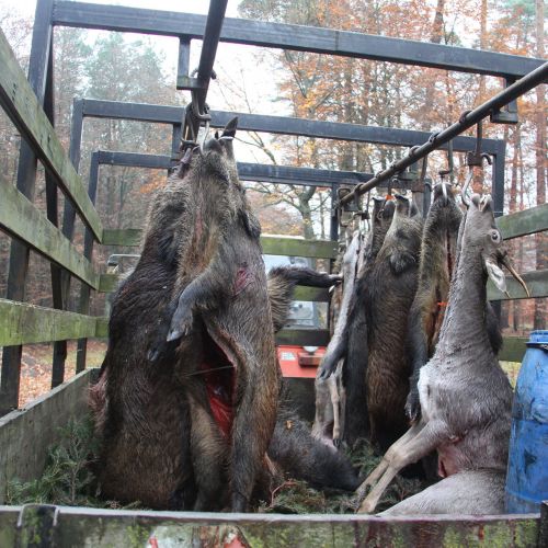 Lutowko har bra bestånd av rådjur, kronhjort, dovhjort och vildsvin. Den årliga kronhjortskvoten är ca. 50 hjortar – de allra flesta med en trofévikt på 5-7 kg, men även ett antal hjortar över 7 kg – några till och med över 8-9 kg – skjuts på Lutowko. Dovhjortspopulationen utmanas av vargar, men runt 22 dovhjortar skjuts fortfarande årligen med fina troféer som väger upp till 3 kg, några lite mer. Råbockar har bra trofékvalitet, där de flesta bockar väger mellan 250-400 gram. 30 spänn bockar skjuts varje år. Det finns även vildsvin på Lutowko, och dessa jagas både på individuella jakter under hela säsongen och på de 4 årliga drevjakterna, som vanligtvis ger bra resultat med en blandning av alla viltarter – dock måste grupperna vara uppmärksamma på restriktioner för dovhjort.