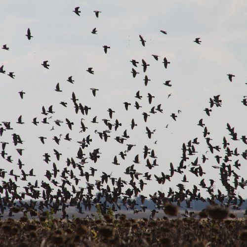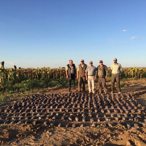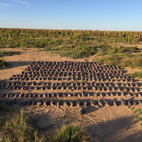 Duvorna kommer i tusental till de mogna solrosmarkerna för att äta, Säsongen sträcker sig från slutet av februari till slutet av augusti. Det är en upplevelse för livet att se de många duvorna komma från alla riktningar.
