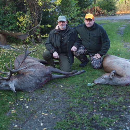 Kombijakten fungerar oftast på så sätt att en tryckjakt arrangeras på förmiddagen och efter lunchrasten fortsätter jakten som en individuell jakt med egen jaktguide. Om vädret tillåter kan Vildsvin jagas under kvällen – Observera att det är lagligt att använda Night-Vision för vildsvinsjakt. Viltparaden kommer typiskt sett bestå av en blandning av kronhjort, vildsvin, rådjur och räv, samt ev. dovhjort, och jaktledaren räknar med att det skjuts mot viltet som kommer för att nå ett tillfredsställande resultat (dock inte nödvändigtvis rådjur).