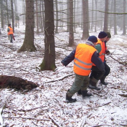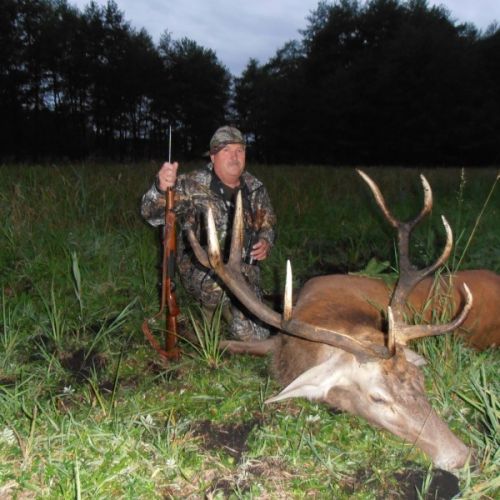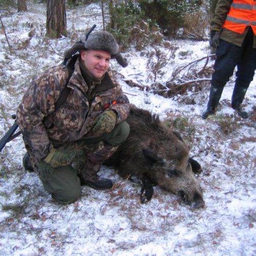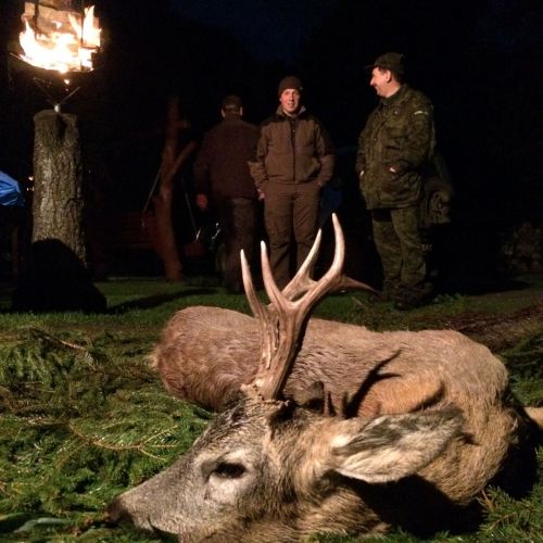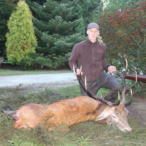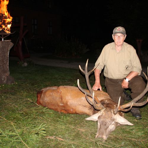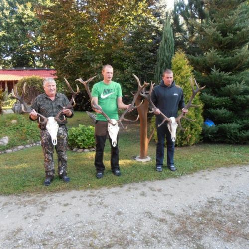 Boende sker på reviret i ett gammalt rött tegelhus, beläget i reviret direkt ner till en stor 30 km lång sjö. Jägarna är inkvarterade på andra våningen som - förutom matsalen - innehåller 5 dubbelrum och 1 enkelrum, alla med eget - nyrenoverat - badrum/toalett. Det finns ett kylskåp till våra jägares förfogande. Jaktchefen Tomasz är en mycket skicklig jägare och talar bra engelska. Det finns Wi-Fi och mobiltäckning.