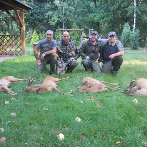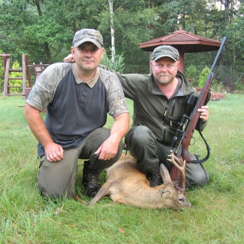 Boende sker i jakthuset mitt i skogen i vacker omgivning med 2 km till närmaste granne. Riktigt god mat serveras. Jaktförmannen Piotr talar bra tyska. Gästdelen på plan 1 innehåller förutom ett mysigt vardagsrum 6 dubbelrum och ett trebäddsrum. Alla rum har egen toalett och badrum. Ett kylskåp finns i vardagsrummet. Det finns tillgång till låst garage och kylförråd. Det finns Wi-Fi och mobiltäckning.