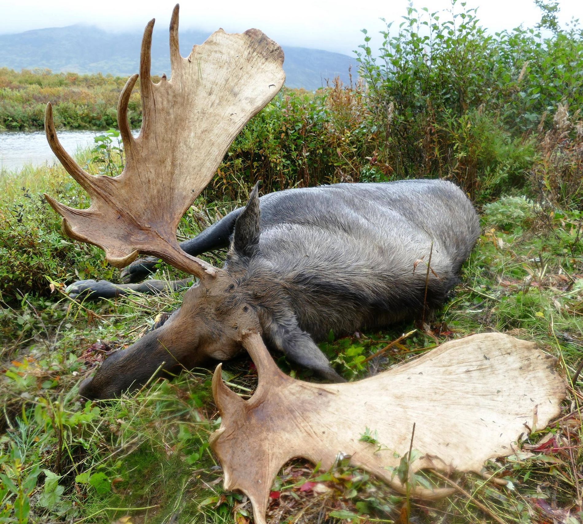 Alaska Älgarna kommer i genomsnitt upp i 60-65" tum och 70 " tum är inte helt ovanligt, stora skovel horn med många taggar är det jägarna letar efter. Under september är Älgarna i brunst och mycket aktiva, kikarspaning och lockjakt är det effektivaste jakt metoderna. Jägarna flygs ut i dalgångarna från huvudcampen och bor i primitiva traditionella Alaska tältläger med den modernaste utrustningen. Därifrån jagar du och din guide i skuggan av vulkaner och spektakulära berg och floder, bäckar som på höstarna vimlar med lax, som utgör den största vilda lax uppgången på jorden.