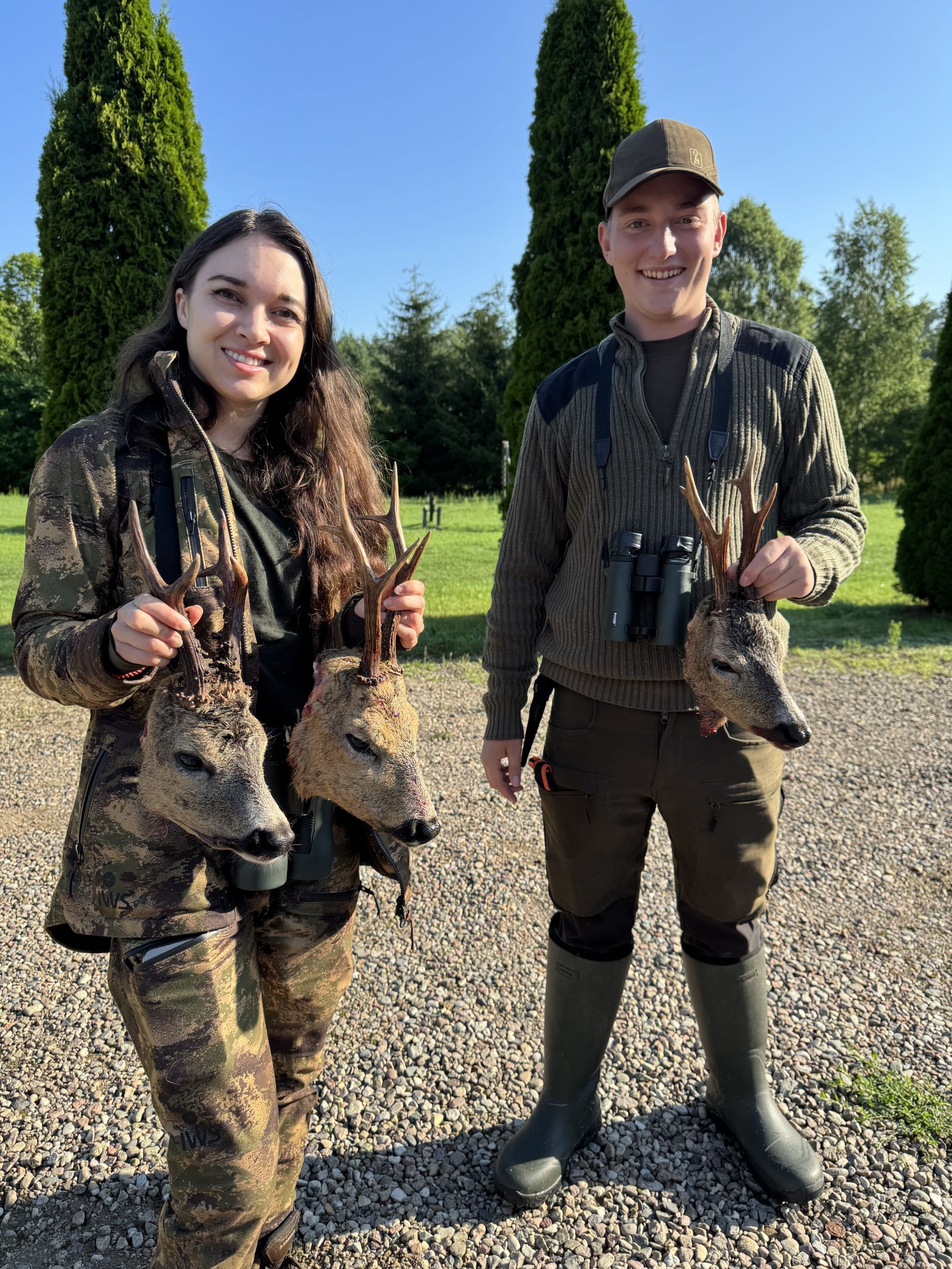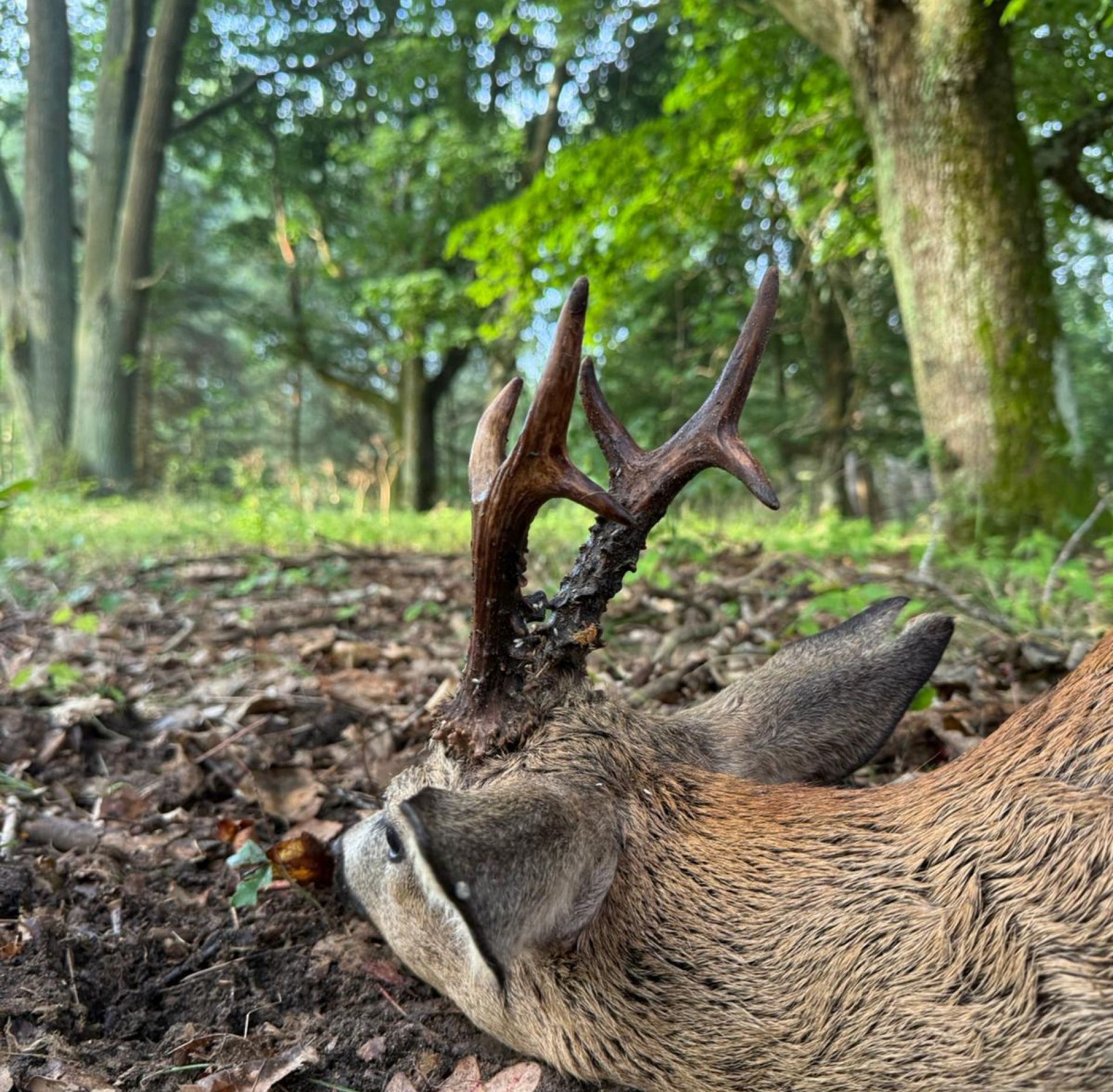Stämningen var på topp hela vägen, och även om jakten var utmanande – med bara cirka 10 % av grödorna skördade och brunsten ännu inte riktigt i gång – lyckades gruppen fälla hela 23 fina bockar! Ett starkt resultat under svåra förhållanden. Det sköts flera riktigt fina bockar – däribland flera stora och abnorma troféer.