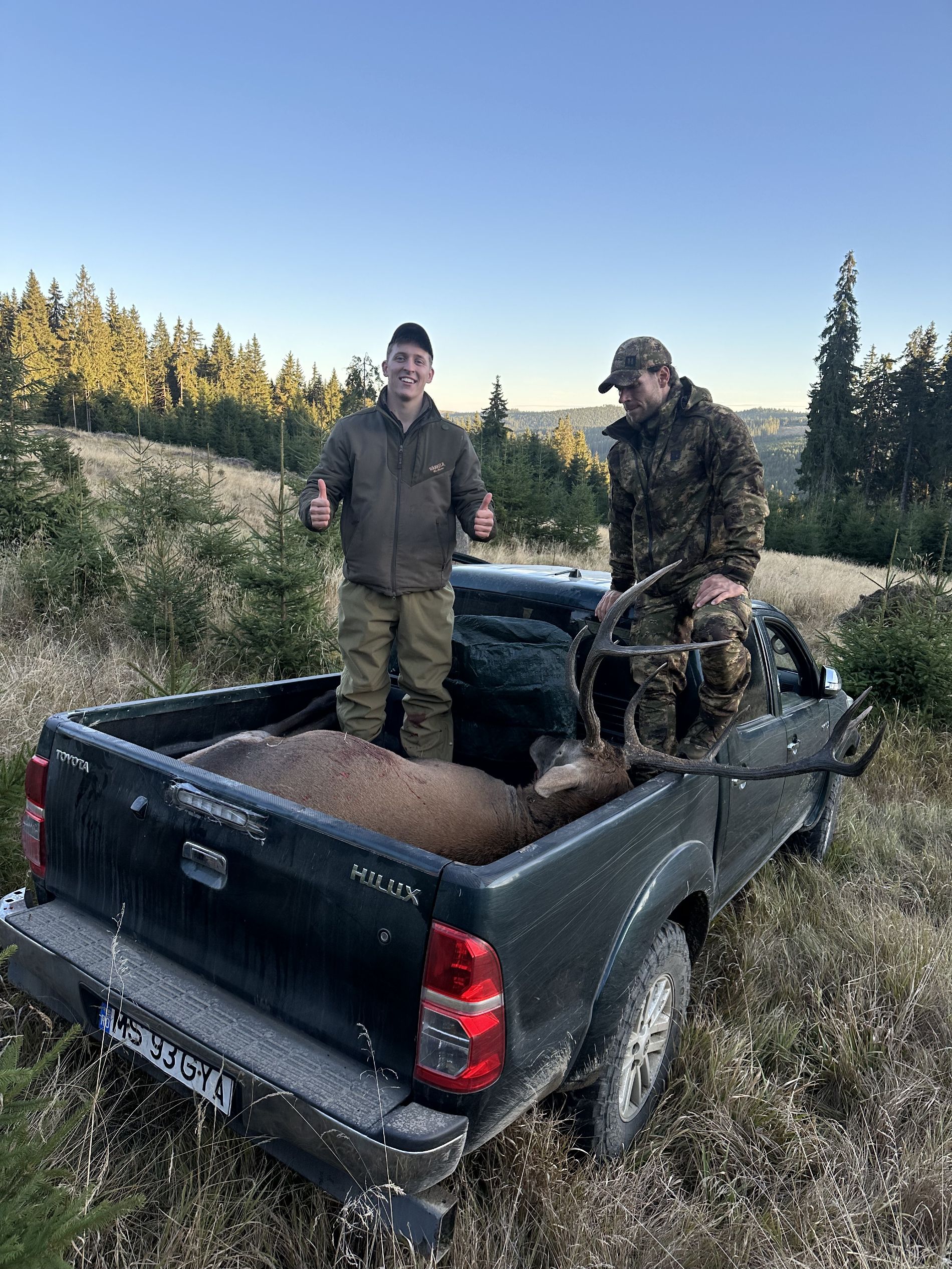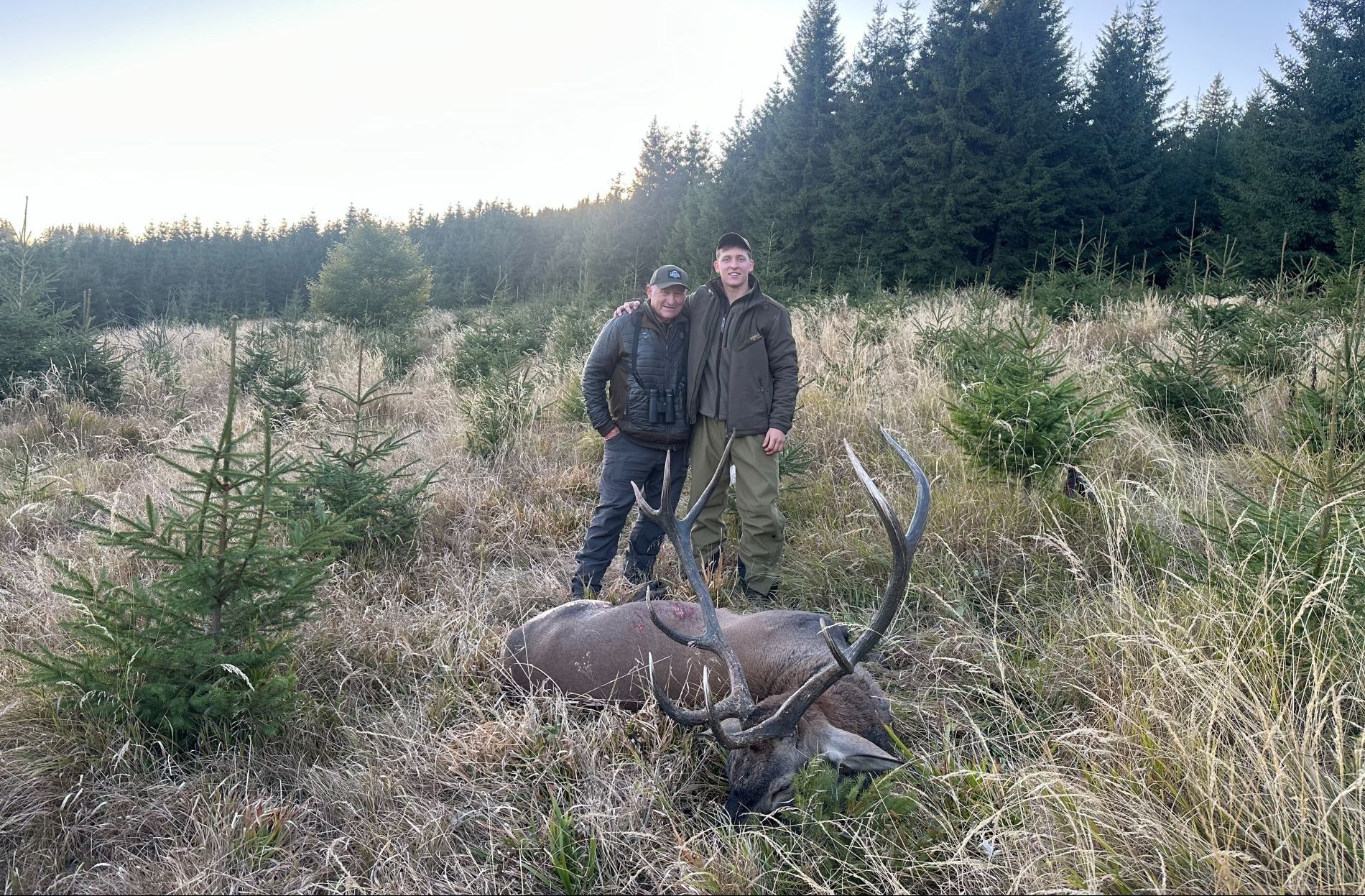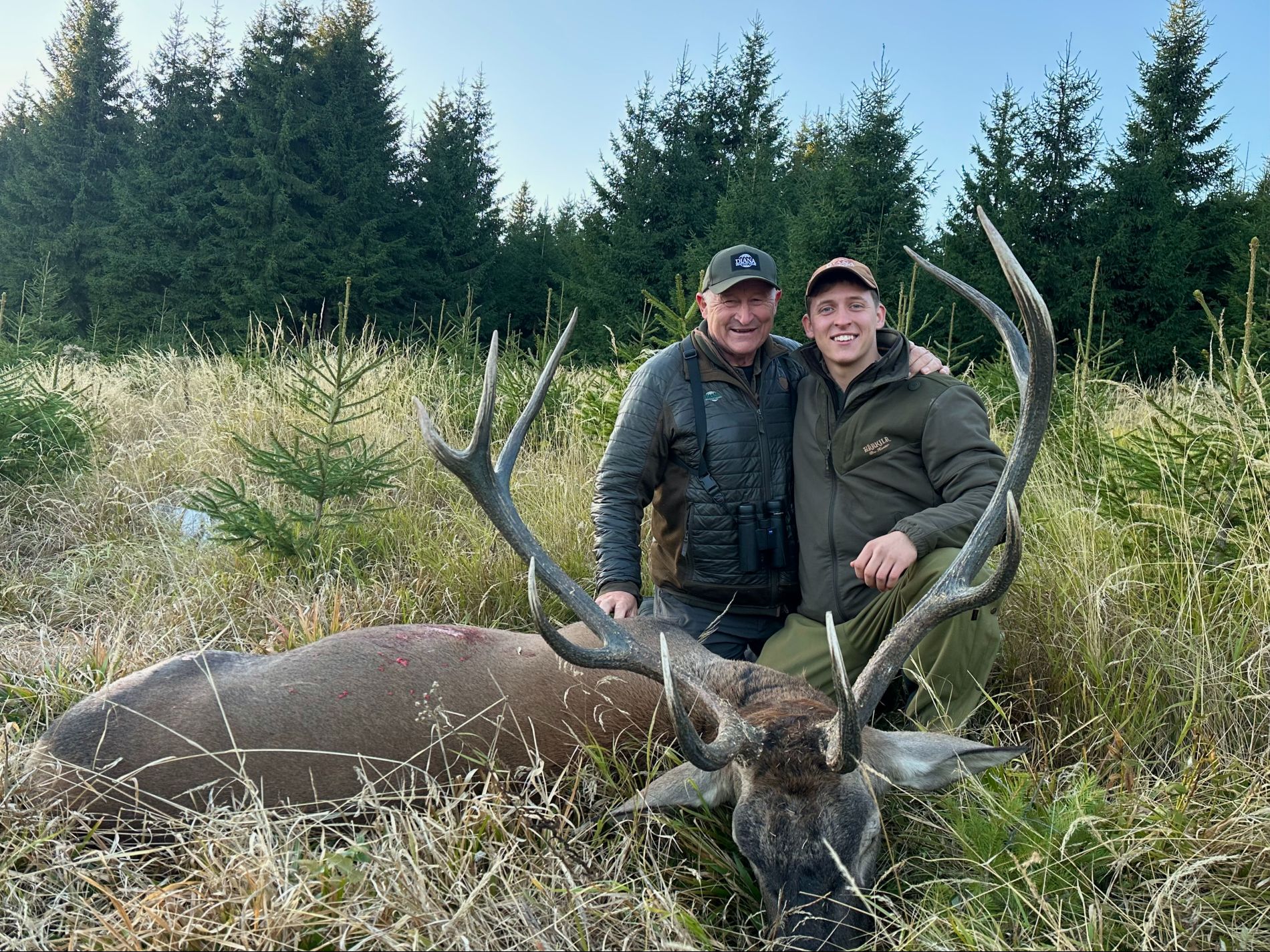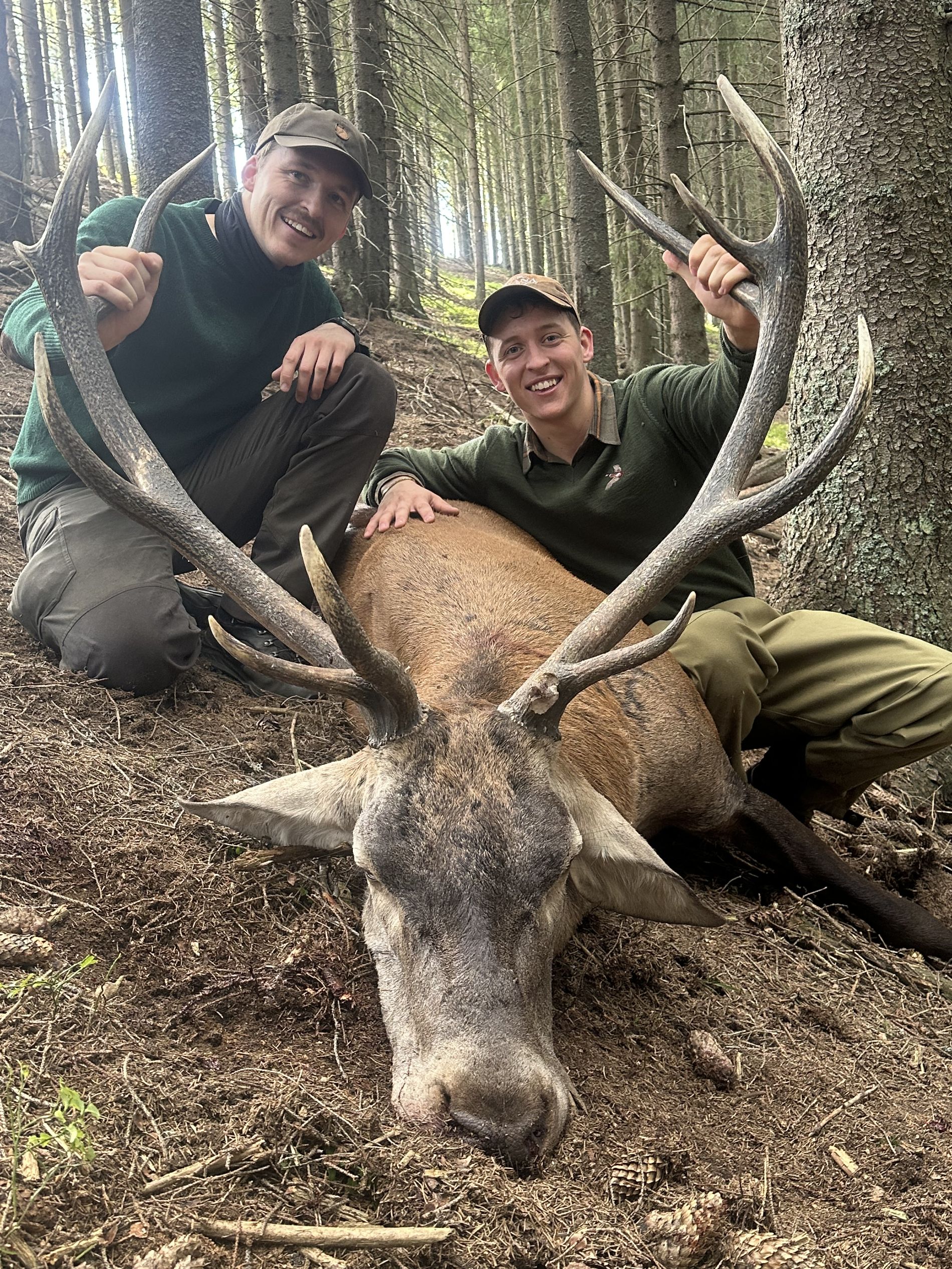 Båda sönerna fick varsin ståtlig karpatisk hjort, medan Poul stolt följde i deras fotspår och fick uppleva allt på nära håll.