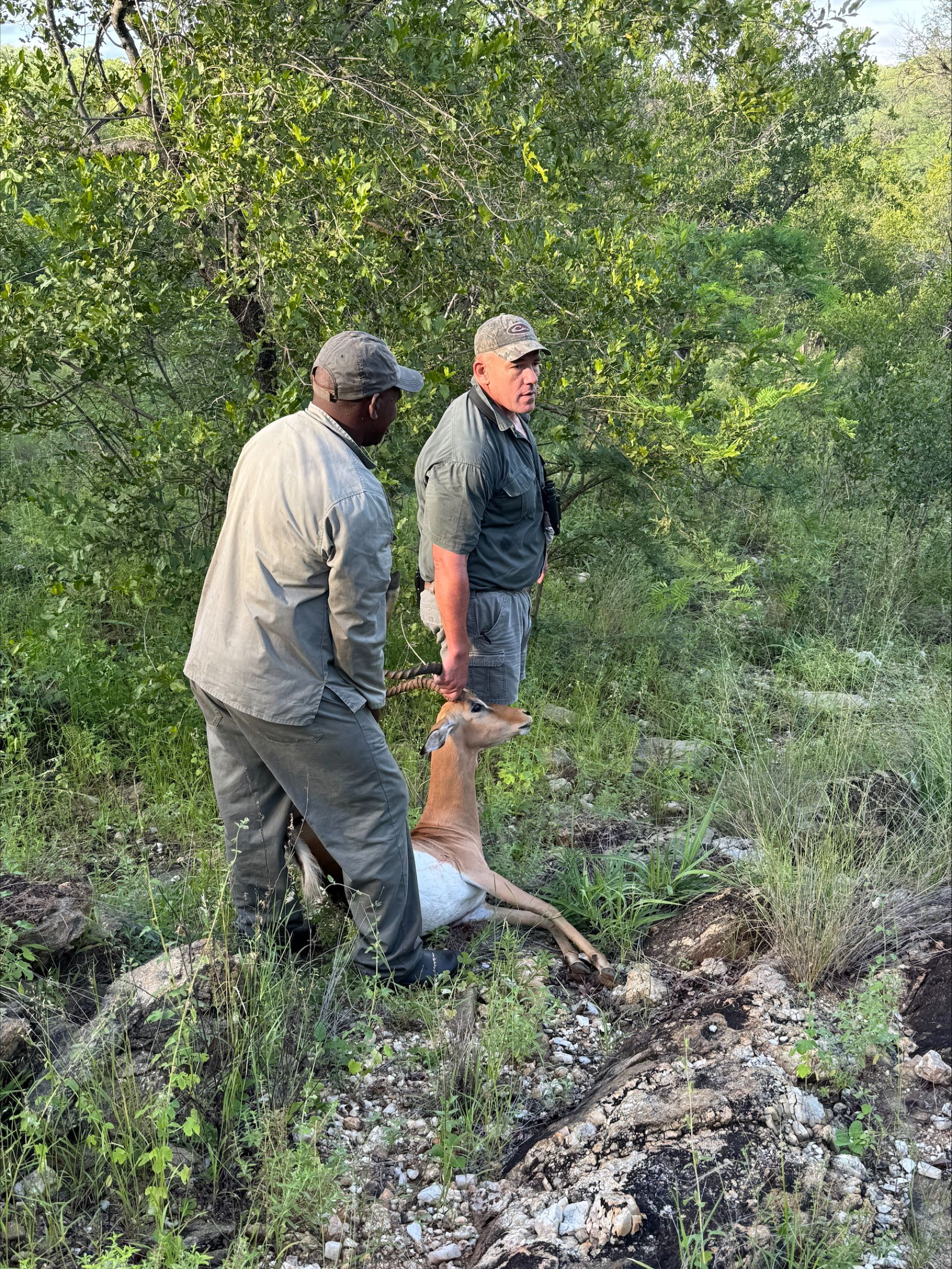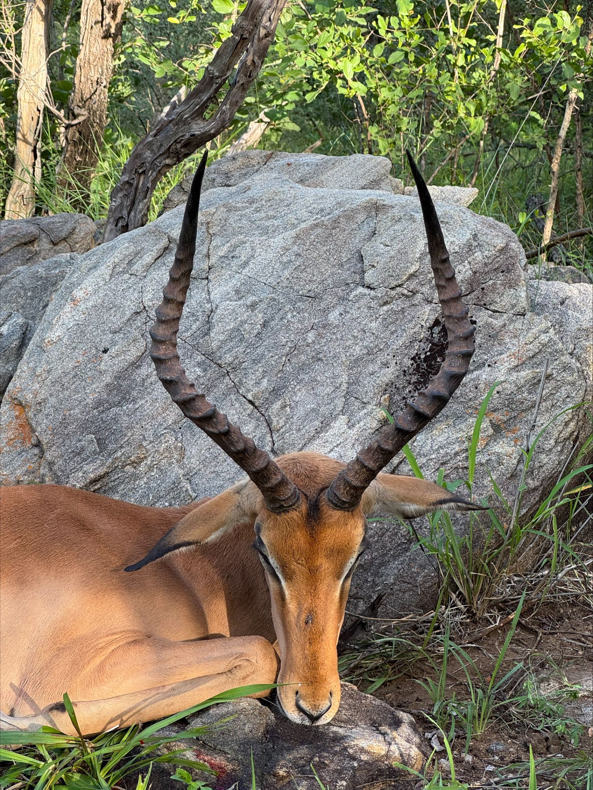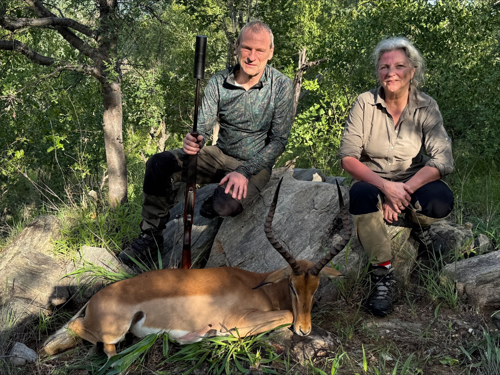 Hanne och John har just haft en fantastisk upplevelse på Balule River Lodge i Sydafrika. Deras resa bjöd på spännande safariäventyr, fantastisk mat och en speciell jaktdag där Johns mål var att fälla en impala. Med stor framgång lyckades han, och han fick en imponerande vacker impala. Stort grattis!