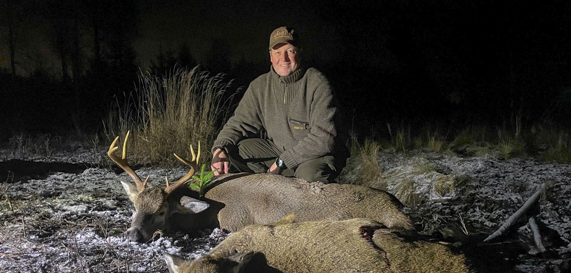 Han var taget afsted sammen med to af hans jagtkammerater fra Nordfyn og de skulle alle tre prøve kræfter med de spændende og sky whitetail hjorte.