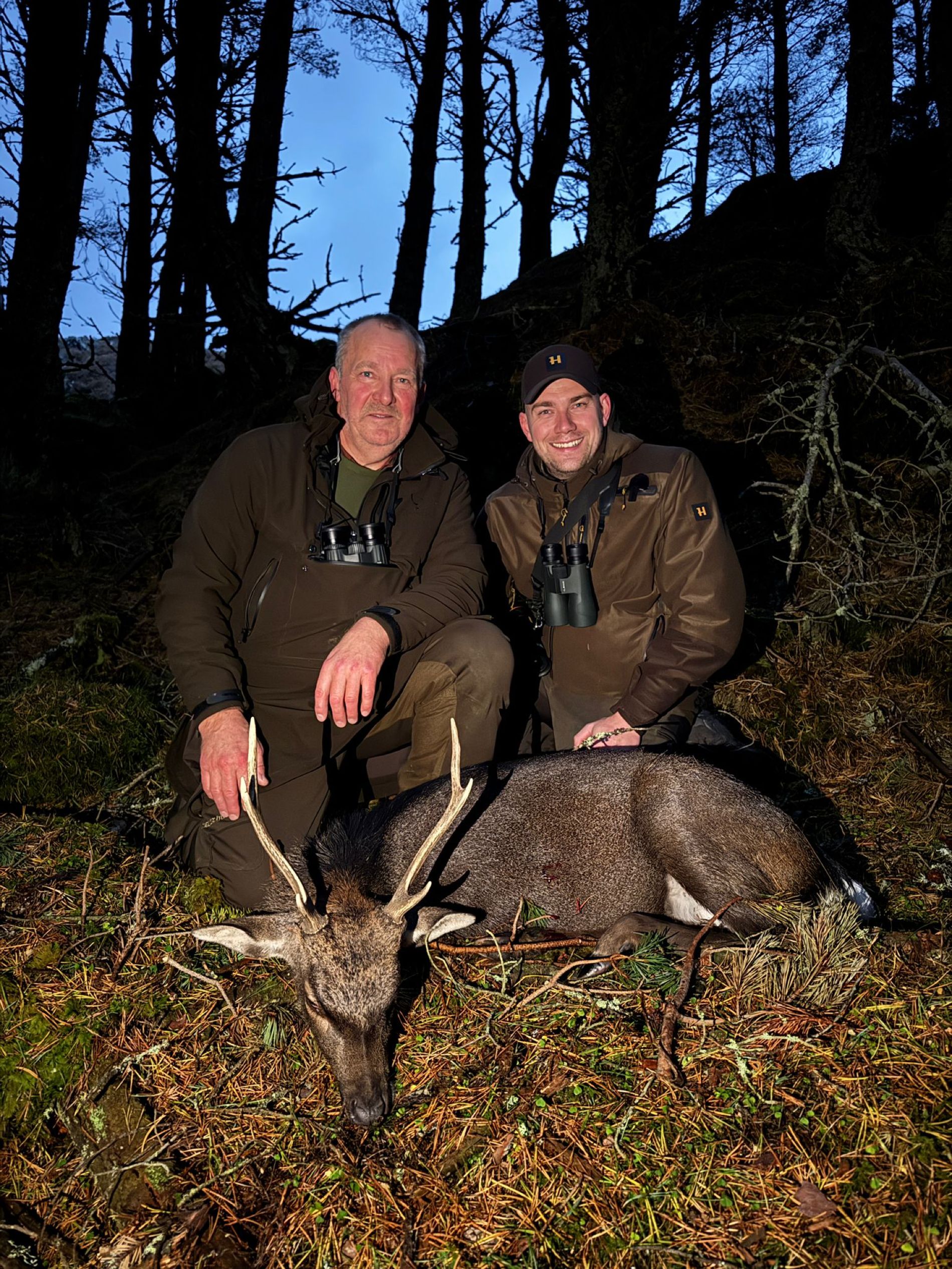 Förra året jagade de kronhjortar i de skotska högländerna, men fick aldrig chansen på sikahjorten. Därför var vi snabbt överens om att de i år skulle satsa fullt ut på sikajakten – och det gav resultat!