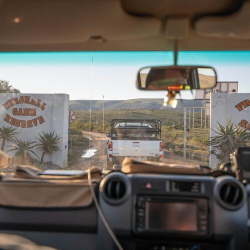 Frontier Safaris arrangerar jakt i deras area Burchell Game Reserve i the Eastern Cape Province i South Africa. Detta område är 110 km från flygplatsen i Port Elizabeth (man flyger från Johannesburg till Port Elizabeth). Frontier Safaris möter upp på flygplatsen och kör gästerna t/r Port Elizabeth. Burchell Game Reserve området är 27.000 ha. Ett mycket vackert område med många backar och berg, det finns också mer flacka och mer öppna marker i dalarna och i topparna på bergen. Vi har nu samarbetat med Frontier Safaris i 8 säsonger och jägarna som har varit här är mycket nöjda.