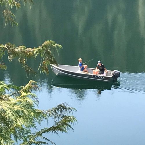 Det är båtar och kanoter i lägret så om du önskar kan du fiska efter Dolly Varden, regnbåge, lax och gäddor.