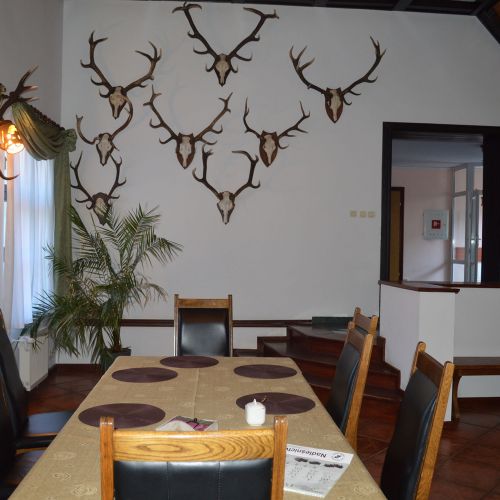 Boende sker i ett fint jakthus mitt i jaktområdet. Det är ingen stor lyx, men allt är som det ska och maten är riktigt god. Våra gäster bor i ena delen av huset, medan jaktledaren Marek bor i den andra delen. Marek talar engelska och ser till att allt går smidigt. Gästdelen har ett mysigt vardagsrum/matsal, 6 dubbelrum (2 rum delar badrum och toalett) och 2 lägenheter med vardera 1 rum, 1 badrum och 1 litet vardagsrum. Det finns ett kylskåp till våra gästers förfogande. Det finns WiFi i huset, men bara dålig mobiltäckning.